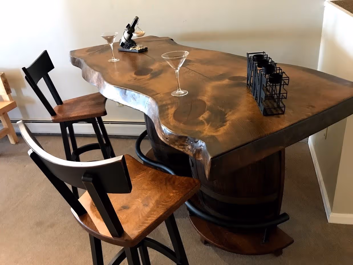 We specialize in handcrafted live edge tables, river tables, and ocean tables. Beyond tables, we can transform nearly anything in your home or business into a custom live edge piece — including countertops, bar tops, shelving, railings, mantels, and architectural accents — all crafted locally with the same attention to detail and craftsmanship.